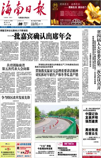 海南日报 头版 001 2008-03-281 2008年03月28日 星期五