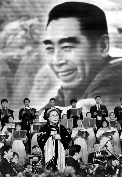 上图说明:3月28日,《你是这样的人》———怀念敬爱的周总理大型情景音乐会在北京人民大会堂举行。这是郭兰英在演唱“绣金匾”。 新华社记者 李学仁 摄