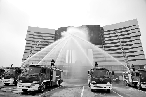 北海市民争睹先进消防车演练