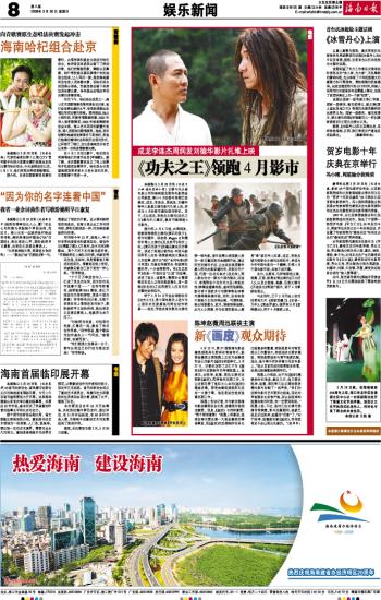 海南日报 娱乐新闻 008 2008-03-301 2008年03月30日 星期日