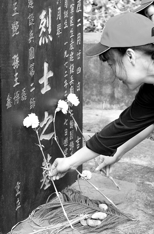 | 3月30日,海口许多中小学生、企业员工利用双休日来到金牛岭烈士陵园祭奠革命英烈。 本报记者 苏建强 摄 |