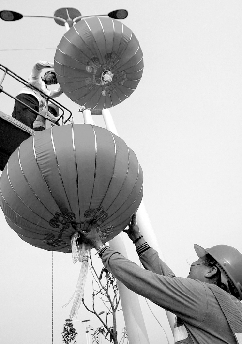 | 海口市将在龙昆北路、海府路、海秀路等主要街道,悬挂总计超过一万盏红灯笼,这些红灯笼将安装夜景灯光,扮靓海口夜色。 本报记者 古月 摄 |