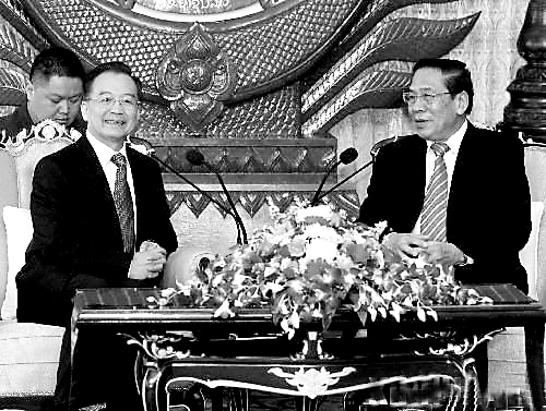 温家宝说,中老两国长期以来相互支持,真诚合作,结下了深厚的友谊,是好邻居、好朋友、好同志、好伙伴。老挝党和政府坚定奉行一个中国政策,支持中国统一大业,我们对此表示高度赞赏。当前,国际形势复杂多变,两国都在推进各自的改革开放,促进国民经济和社会的全面发展,更需要相互学习、相互帮助、携手前进。中方愿同老方保持高层交往,增强政治互信,深化各领域的务实合作,推动两国关系迈上新台阶,更多地造福于两国人民。