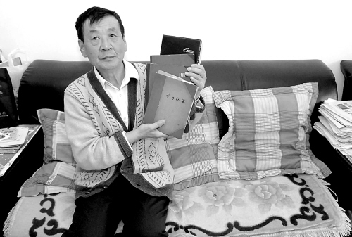 | 赵殿武在自己家中展示他的讨房日记。新华社发 |