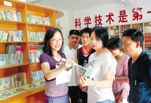 海口市滨濂村农家书屋是我省农家书屋工程建设示范点之一,将于4月初正式向村民开放。目前书屋拥有农业科学、政治等各类图书3万多册。 图为3月30日上午,海口市图书馆管理员陈青向滨濂村农家书屋5名管理人员传授图书管理知识。本报记者 陈德雄 摄