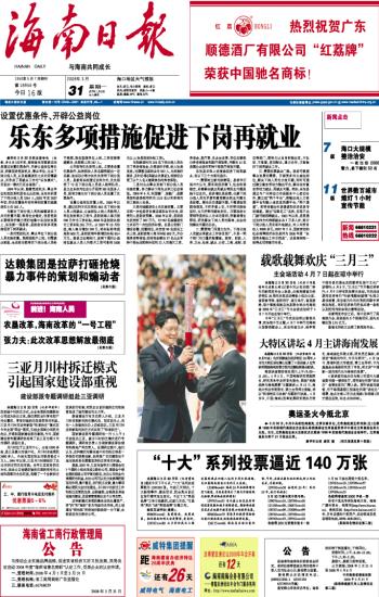 海南日报 头版 001 2008-03-311 2008年03月31日 星期一