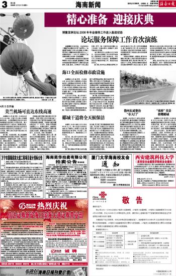 海南日报 海南新闻 003 2008-03-311 2008年03月31日 星期一
