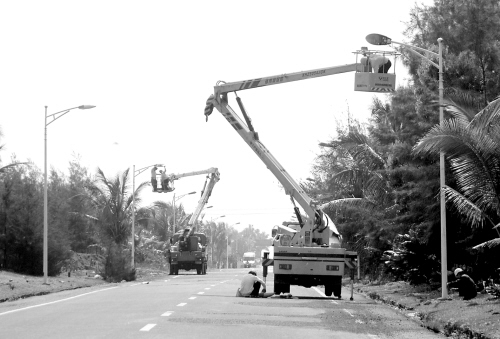 博鳌亚洲论坛年会已经进入倒计时。3月30日,工作人员正在博鳌检修路灯。 特约记者 蒙钟德 摄