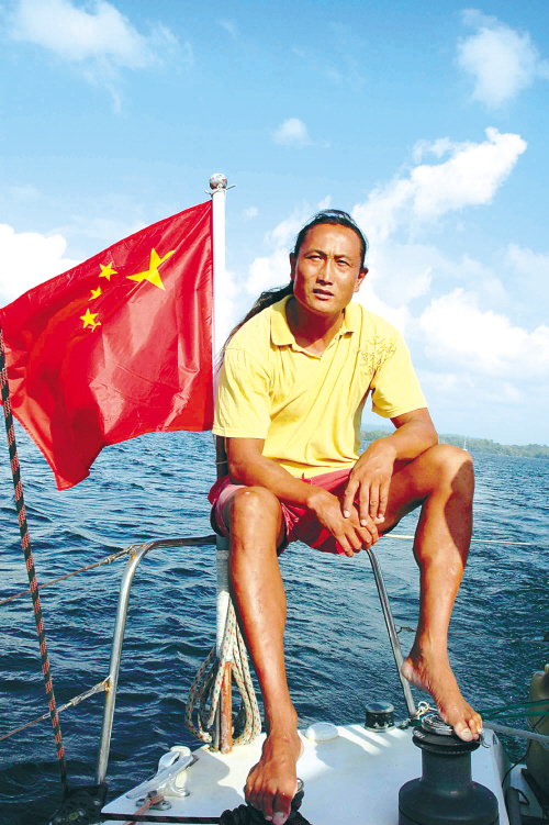 有“中国环球航海第一人”之称的翟墨在历经10个月单人驾驶无动力帆船环球航海后,于3月16日抵达巴拿马,并于4月1日从巴拿马起航,经夏威夷,穿越太平洋返回中国,这段旅程将耗时约3个月。翟墨是中国第一个单人驾驶无动力帆船进行环球航海的人,他于2007年1月6日从日照出发,经厦门和香港修整,于2007年5月18日正式开始这次环球航海,先后经过菲律宾、印度尼西亚,穿越印度洋抵达南非,横渡大西洋抵达加勒比地区。图为3月22日,翟墨在巴拿马运河上。 新华社发(郑克琦摄)