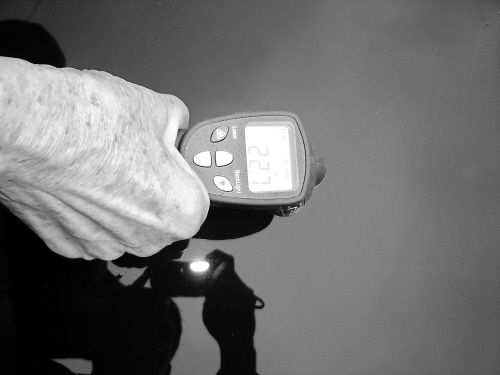 | 专家对观泉井泉水水温进行测量。 本报记者 洪宝光 摄 |