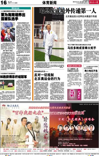 海南日报 体育新闻 016 2008-04-031 2008年04月03日 星期四