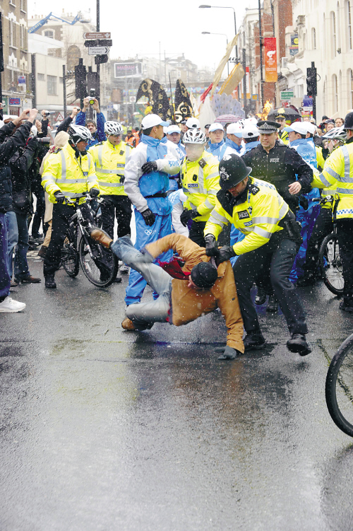 | 4月6日,英国伦敦警方逮捕了极少数企图干扰破坏奥运圣火传递的“藏独”分子。 新华社记者 戚恒 摄