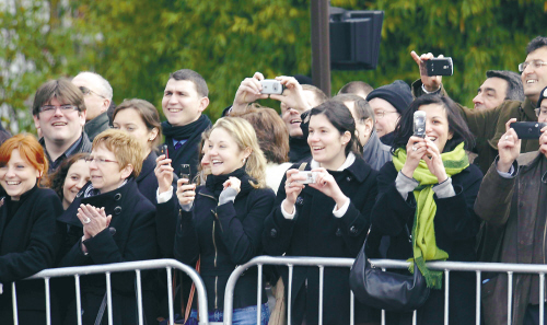 | 4月7日,巴黎市民在街边观看圣火传递活动。 新华社发 |