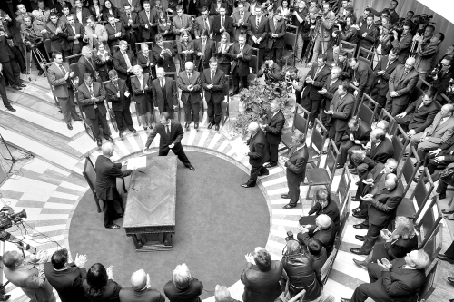 4月7日,科索沃领导人在普里什蒂纳参加宪法草案签署仪式。科索沃领导人当日签署了科宪法草案,并把宪法草案提交给科议会。预计科议会将于9日对宪法草案进行表决。 新华社发(易卜拉欣摄)