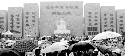 4月8日农历三月三是传说中黄帝出生的日子,黄帝被尊为中华人文始祖,是华夏子孙的共同祖先。戊子年黄帝故里拜祖大典当日在河南新郑市举行,来自世界各地的二万余炎黄子孙参加了祭拜活动。图为拜祖大典现场。 新华社发
