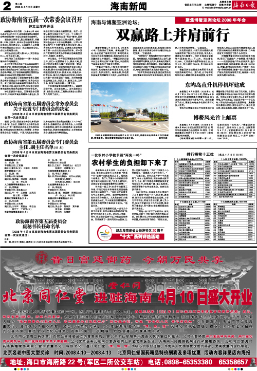 海南日报 海南新闻 002 2008-04-091 2008年04月09日 星期三