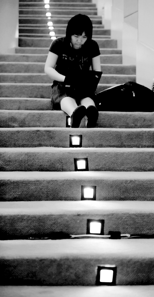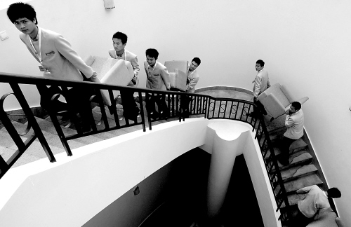 | “赶活”的记者借地板的灯光写稿 |