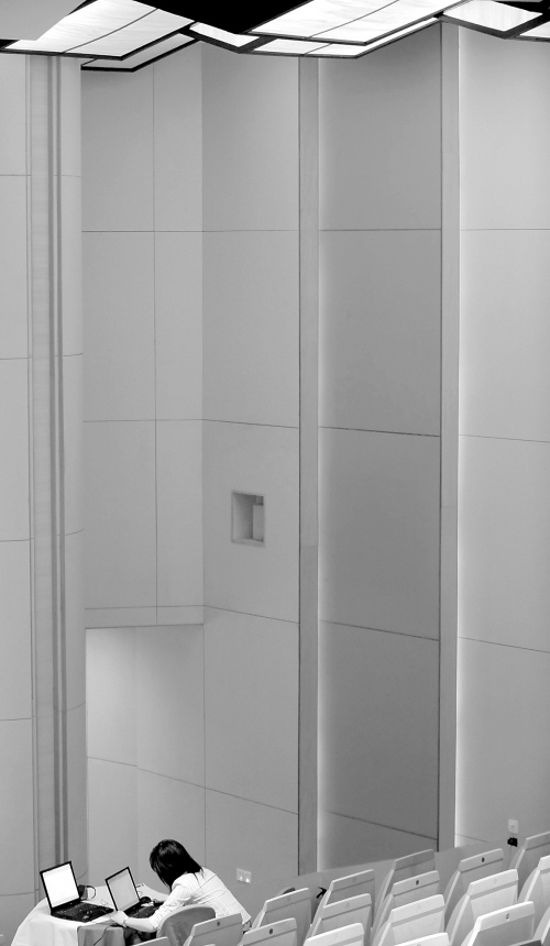 | 大量服务人员在论坛背后紧张忙碌着 |