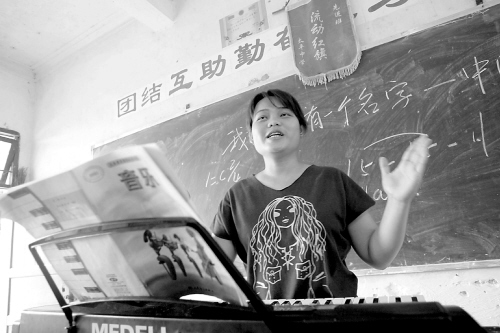 | 琼中吊罗山乡太平中学,志愿支教的郑晓霞老师在给孩子们上音乐课。支教贫困乡镇是许多大学生难忘的人生经历,有些志愿者在期满后选择继续留下。