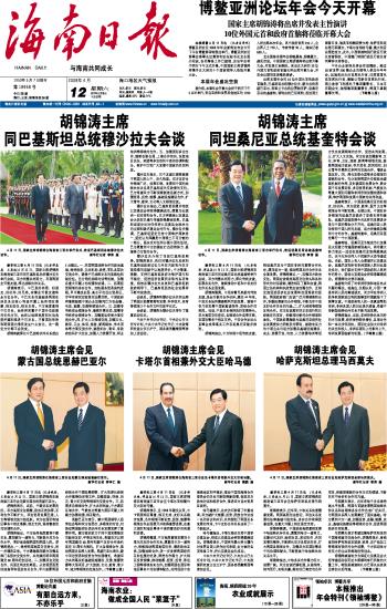 | 海南日报 头版 001 2008-04-121 2008年04月12日 星期六 |