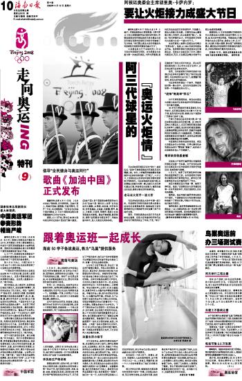 | 海南日报 走向奥运 010 2008-04-121 2008年04月12日 星期六 |
