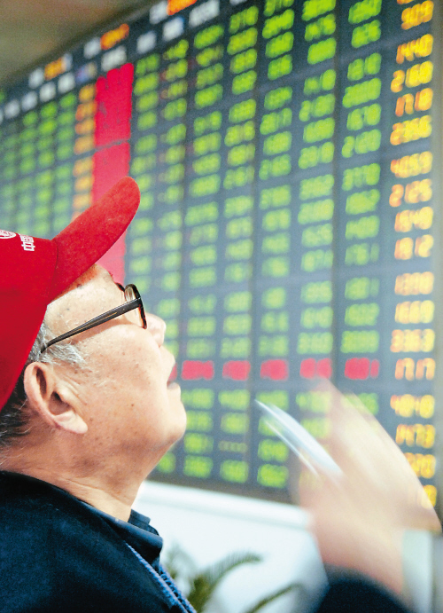 | 4月14日,合肥一股民在证券公司营业厅关注股市行情。