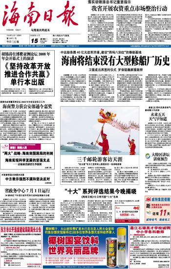 海南日报 头版 001 2008-04-151 2008年04月15日 星期二