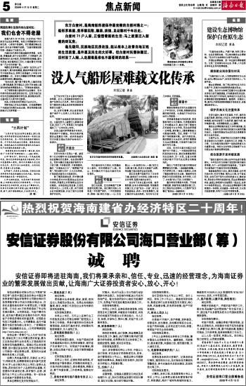 海南日报 焦点新闻 005 2008-04-151 2008年04月15日 星期二