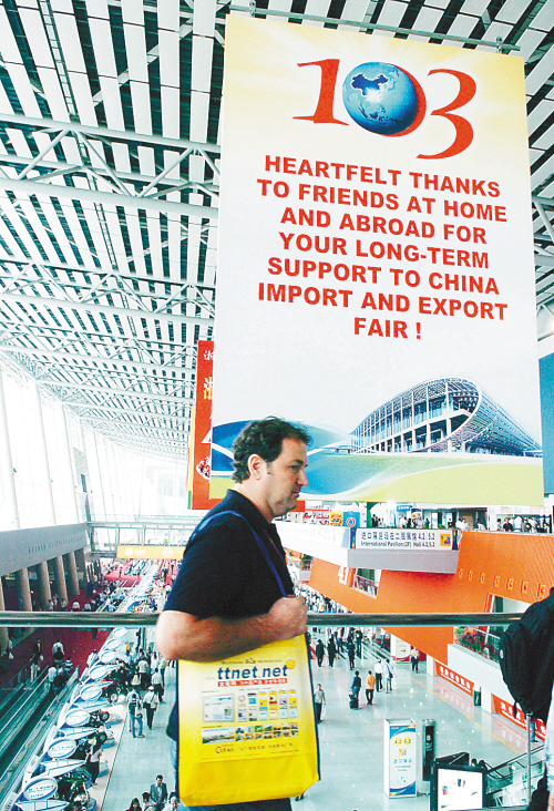 4月15日,第103届广交会在广州开幕,共有来自境内外的18721家企业参展,比上届增加3667家,是历史上规模最大的一届。超过500家境外企业出现在本届广交会上,向中国市场推销食品、机械等各类产品。 新华社记者壮锦摄
