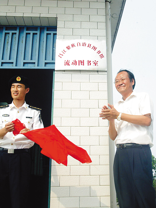 4月14日,昌江黎族自治县文体局局长庞大海与驻扎该县海军某部指导员汤辉共同为该县第一个“流动图书室”揭牌。 为解决边远地区群众、军营官兵们读书难问题,昌江图书馆采取赠送图书以及定期更换流动新书等方式建设“流动图书室”,深受群众好评。 该图书馆当天为海军官兵们带去300多册流动新书以及赠送了200多册图书,价值2800多元。