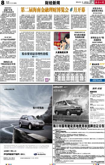 海南日报 财经新闻 008 2008-04-161 2008年04月16日 星期三