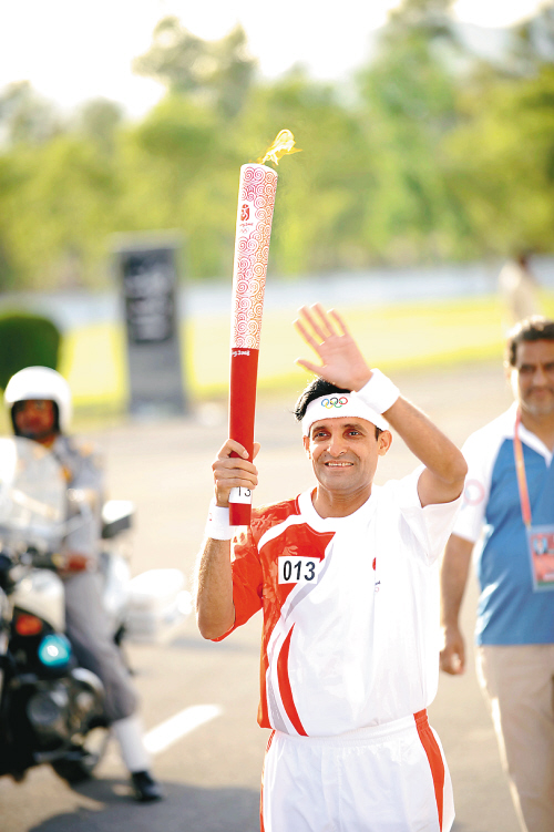 | →16日,巴基斯坦火炬手阿西姆·库雷希手举火炬传递。 新华社发 |