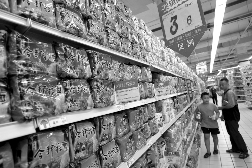 | 去年五月以来,食品价格波动较大,某些方便面企业曾试图联合涨价。 本报记者 王凯 摄 |