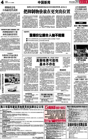 海南日报 中国新闻 004 2008-04-171 2008年04月17日 星期四