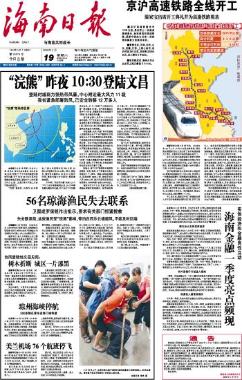 海南日报 首版 001 2008-04-191 2008年04月19日 星期六