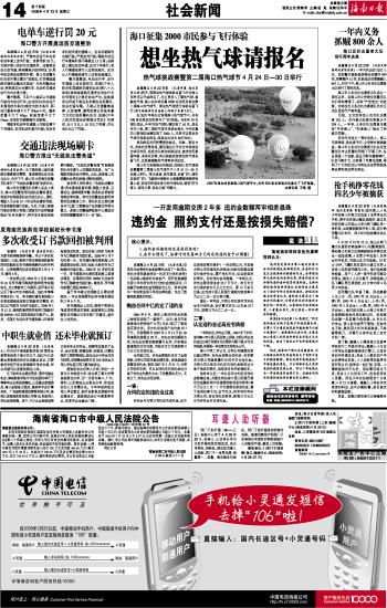 海南日报 社会新闻 014 2008-04-231 2008年04月23日 星期三