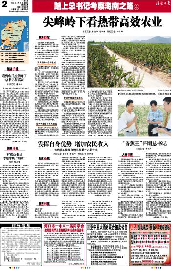 | 海南日报 踏上总书记考察海南之路 002 2008-04-231 2008年04月23日 星期三 |
