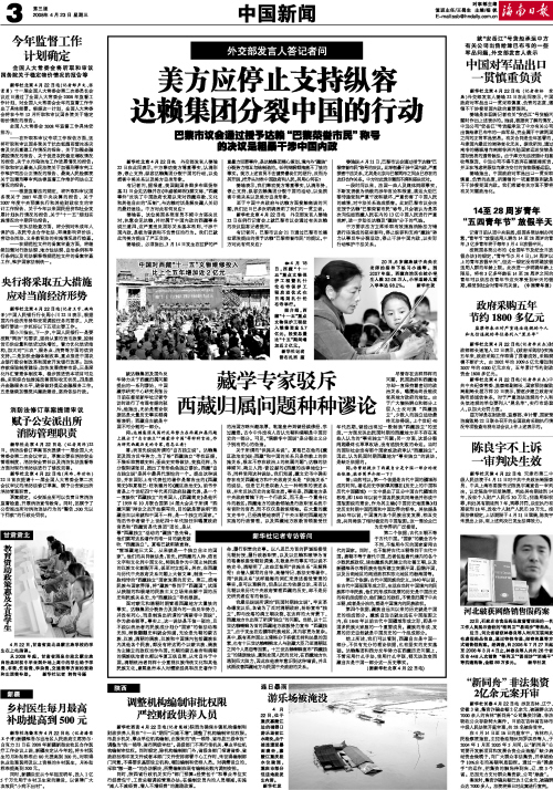 海南日报 中国新闻 003 2008-04-231 2008年04月23日 星期三