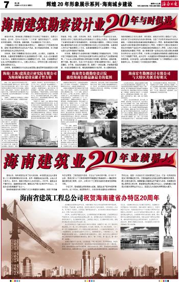 | 海南日报 辉煌20年形象展示系列·海南城乡建设 007 2008-04-231 2008年04月23日 星期三 |