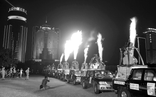 随着省委常委、海口市委书记陈辞宣布活动开幕,40个热气球所进行的喷火表演当即吸引了全场的眼球,热气球所喷射的火焰高达四五米,甚为壮观。随后,热气球喷火车方阵开始从万绿园出发,沿着滨海大道、滨海立交桥、龙昆北路、南大桥、海秀东路、三角池、海府路、五公祠,后折回龙昆北路至国贸路、玉沙路一路巡游,最后返回了万绿园,并在万绿园、明珠广场等地进行了喷火表演。一路上,热气球所到之处均吸引了众多海口市民观看。