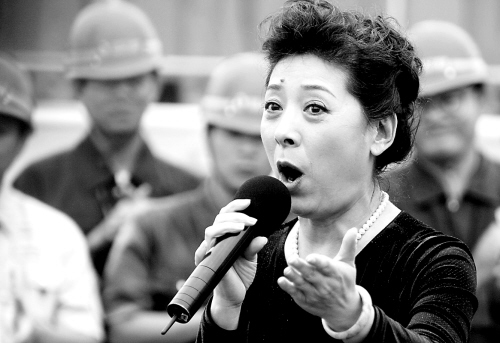 | 关牧村在洋浦深情演唱 本报记者 苏晓杰 摄 |
