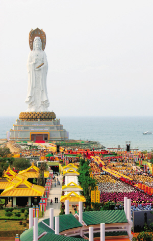 {2} 2005年4月24日,三亚南山海上观音像开光大典举行。