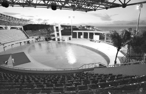 8月8日,海口假日海滩水世界水上表演馆试业迎宾,并特邀俄罗斯珍珠水上芭蕾舞团作首场展示。表演馆在建筑上承袭古罗马建筑风格,并融合海南热带风光,能容纳1800余名观众,可用于水上芭蕾、跳台跳板跳水和大型文艺表演。该项目由海南方圆置业(集团)有限公司和海口中大置业总公司合资兴建。