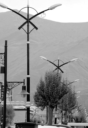 | 4月25日,安装了新路灯的拉萨市朵森格路。