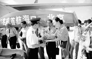 1999年3月28日下午3时36分,海航的喷涂着绚丽图案的波音737———800“椰风海韵”号客机首先降落在美兰机场;3时45分,南方航空的波音777大型宽体客机也抵达美兰。两机的安全、平稳降落,标志着海口美兰机场正式通航。中国民航总局局长刘剑锋、省长汪啸风等为海口美兰机场通航剪彩。