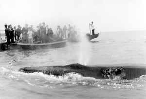 2000年2月5日(龙年大年初一),一条罕见的巨鲸(国家Ⅱ级水生保护动物),在海南省琼山市铺前湾港北浅滩上搁浅,被港北村渔民发现。巨鲸长约11米,高约1.4米,估计体重在1.5万公斤以上。因太阳暴晒和海水浸泡,巨鲸全身已多处受伤,肌肉裸露面积达几平方米。巨鲸精疲力竭,呼吸急促,生命危在旦夕。
