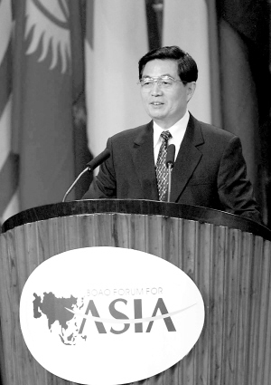 胡锦涛指出,作为亚洲的一员,中国的发展与亚洲的繁荣息息相关。中国真诚希望同亚洲各国发展全面、紧密的合作伙伴关系,政治上平等互信,经济上互利共赢,文化上交流借鉴,安全上对话协作,共同实现亚洲的振兴。为加强同亚洲国家的合作,中国将与亚洲国家进一步增进睦邻友好和政治互信,拓展和深化双边经济合作,加速区域经济一体化进程,促进文化交流和人员往来,推进安全对话和军事交流。