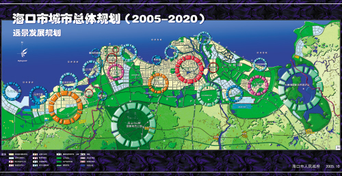 远景期海口的中心组团、长流组团、江东组团以完善城市功能,提高土地集约使用和城市环境空间的美化、优化为主。中心组团的土地开发已基本融合,进入调整、改善和优化阶段,长流组团依托较为优越的区位优势,规模有较大的扩展;江东组团经过片区为单位的开发和环境的优化,形成海口的旅游、第二居住地等职能比较成熟的发展区。其中海口核心滨海区、海口水城、东海岸风光带、西海岸风光带成为国内知名的旅游区。