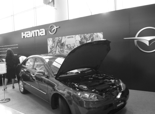 一汽海马汽车有限公司(简称海马汽车)位于海口市金盘工业开发区,占地3000余亩,年产能15万辆,拥有员工3000人,紧密关联企业员工15000余人。经过近20年的建设,海马汽车已建成处于国内领先水平的汽车冲压、焊装、涂装、总装工艺生产线,排名中国企业500强,机械工业企业100强。截止到2007年底,海马汽车在全国已拥有160家销售服务店和120家销售服务支店。同时,海马汽车正在积极探索海外之路。2007年6月,首批海马汽车出口非洲;8月,海马汽车携旗下5款车型首次参加俄罗斯国际车展;9月,海马汽车在南美隆重上市;11月,海马汽车亮相中东迪拜车展;随后,在北非举行了产品投放仪式。目前,已签约海外代理商6 家,实现海外销售1200台。