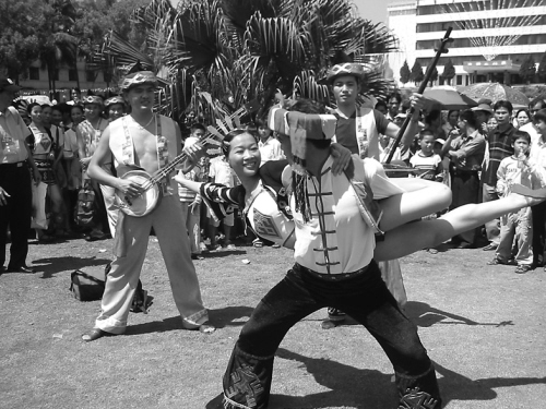 | 文明生态村的创建使群众们的生活越来越丰富。图为牙叉儋州村的腰鼓队 |